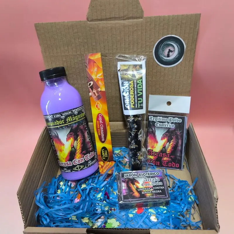 El Kit Arrasa con Todo es la tormenta mágica que limpia y protege. Cada elemento actúa como fuerza destructora de lo negativo y guardián de lo positivo. Su energía arrasa con obstáculos, corta trabajos oscuros y fortalece el espíritu, permitiendo avanzar con seguridad, claridad y poder.